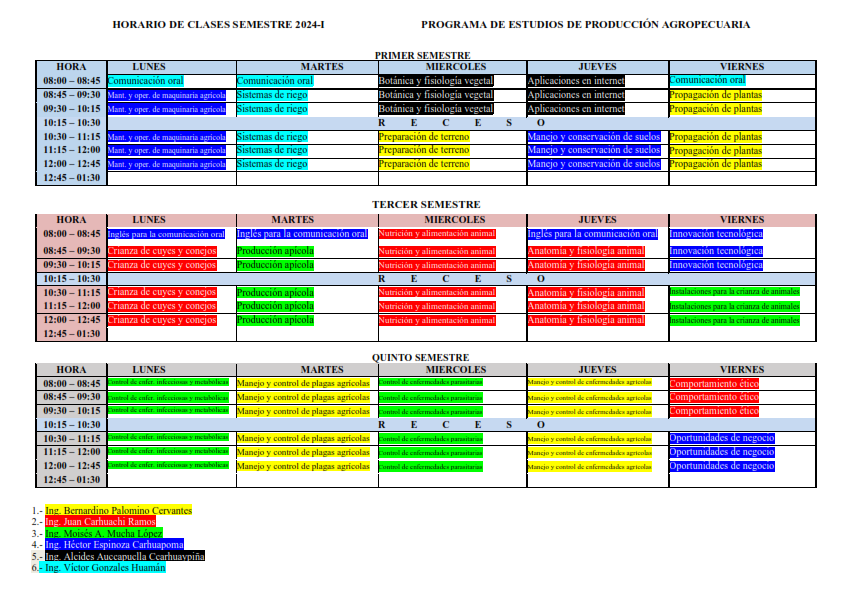 HORARIO DE CLASES 2024 – I