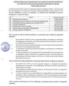 CONVOCATORIA PARA LA ENCARGATURA DE PUESTO O FUNCIONES DE GESTION PEDAGOGICA DE LOS IES/IEST/EEST Leer más septiembre 8, 2025